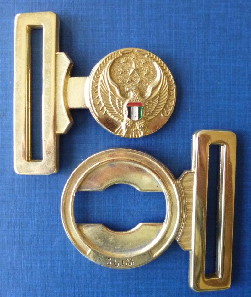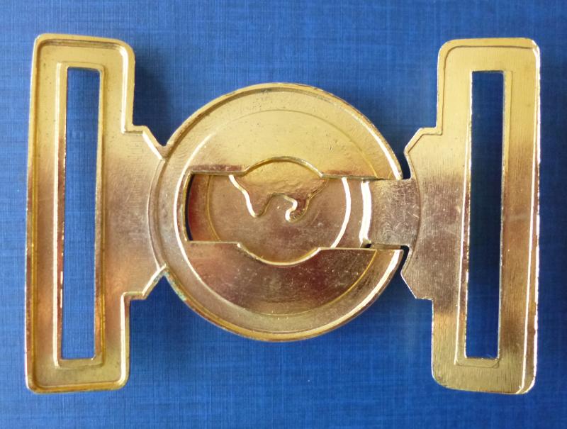 Two-piece gilt army dress belt-buckle with enamel national shield. Excellent condition.