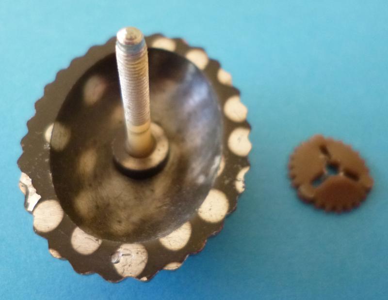Gilt plastic-composition oval cockade with the Ukrainian trident symbol on the blue central area. The reverse has a long screw-post with fixing nut. Excellent condition.