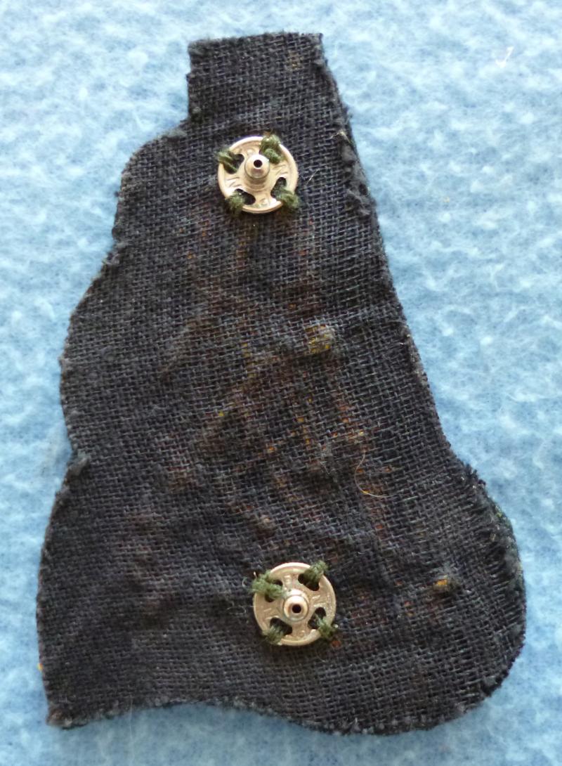 Hand-embroidered gold-wire bagpipes on rifle-green backing with two press-studs on the reverse for fixing to the uniform sleeve. Overall height of the badge 80mm. Excellent condition.