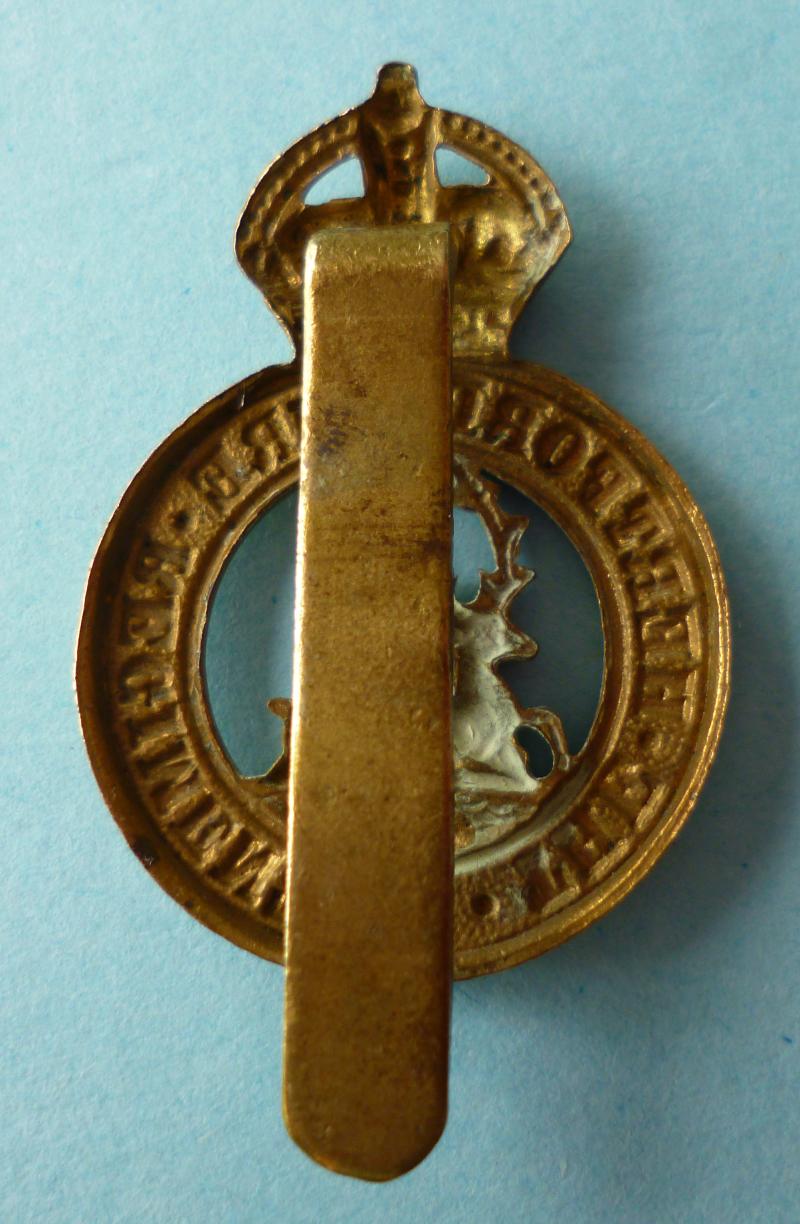Brass narrow antlers pattern King's crown cap badge with original slider fixing on the reverse.. Very good condition.