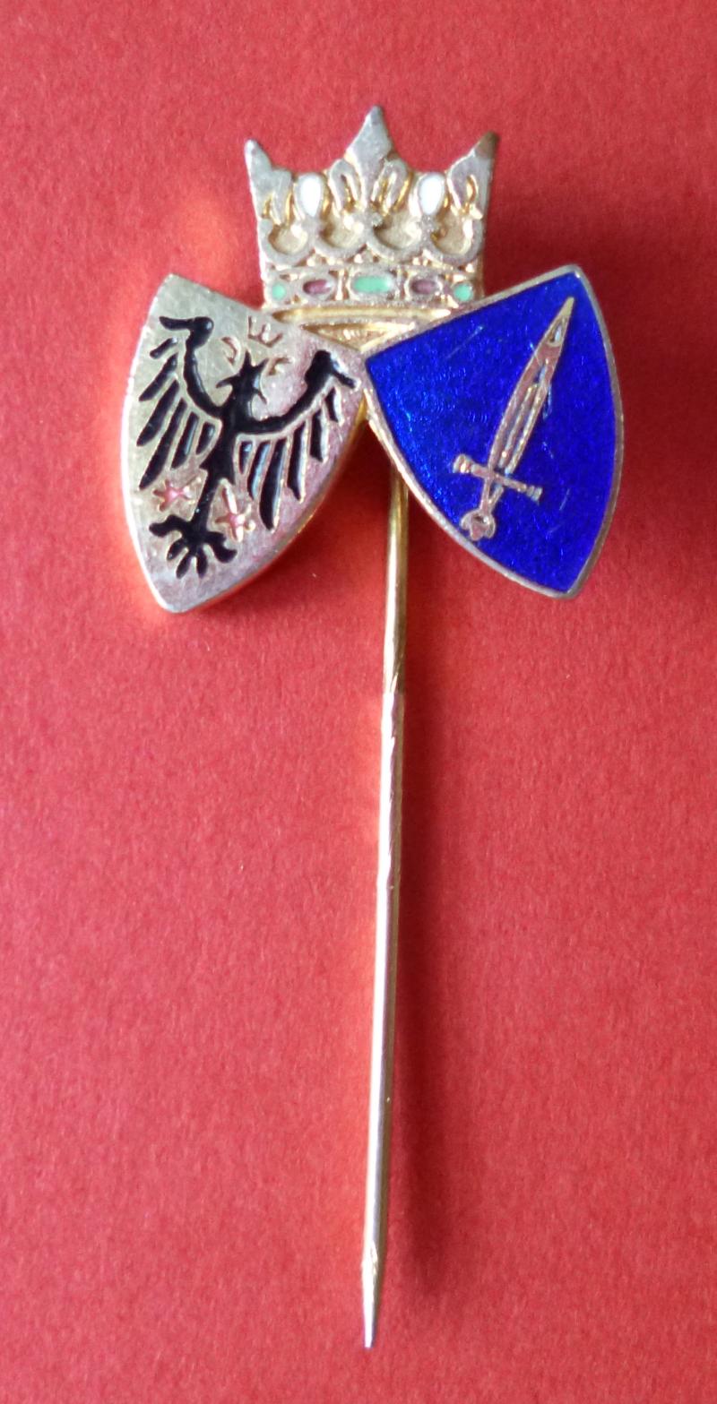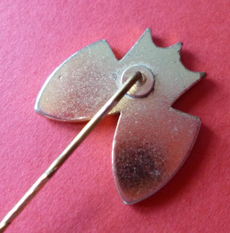 The city arms of Essen, the home of the Krupp steel concern. This example is believed to be from the 1960s and is in excellent condition with knurled stick-pin on the reverse. These were presented to official visitors to the city. No makers mark. This same emblem was adopted by the Kriegsmarine submarine U-203 and worn by the crew on their headgear.
