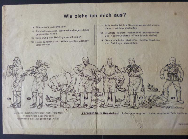 Very scarce four-sided A4 leaflet entitled "Anleitung für das Anlegen der leichten Gasbekleidung 39" (Instructions for donning the light gas-suit 39). The paper is a bit grubby and has certainly been used with a few minor edge nicks but is complete and overall in good condition.