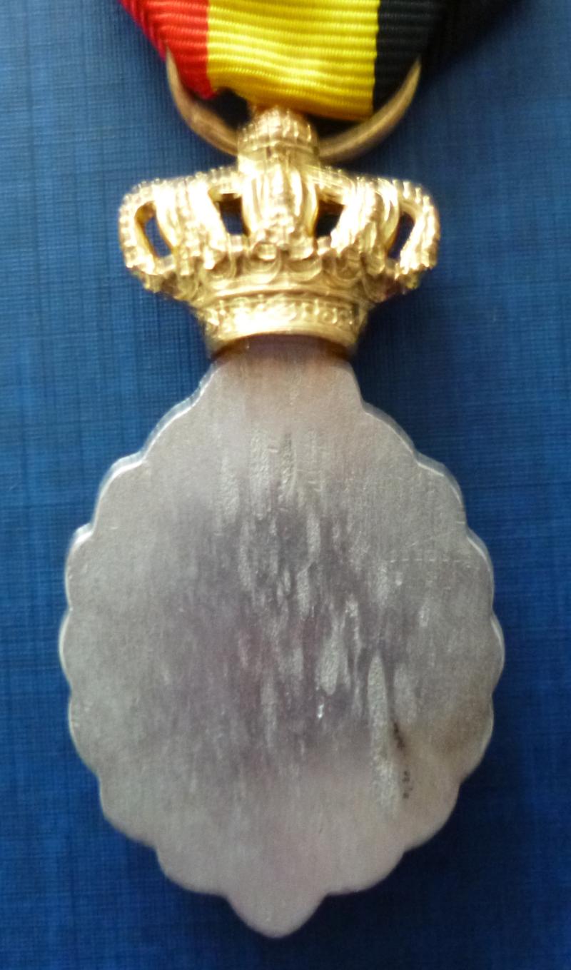 Gilt and silvered metal with enameled obverse complete with original ribbon bearing the ribbon rosette. Excellent condition..