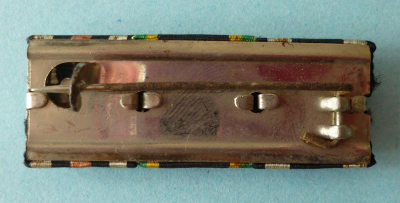 Nice WW1 bar with three ribbons consisting of : 1914 Iron Cross 2nd Class / Sachsen-Weimar 1914 General Merit Medal in Bronze with Swords / 1914-18 Cross of Honour with Swords. The ribbons are individually clipped to a metal back-plate with working pin & hook. Very good condition.